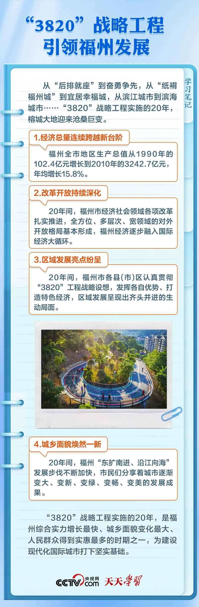 上世紀90年代,習近平在福州工作期間,親自主持編制了《福州市20年經濟社會發(fā)展戰(zhàn)略設想》(簡稱“3820”戰(zhàn)略工程),系統(tǒng)謀劃了福州3年、8年、20年經濟社會發(fā)展的目標、步驟、布局、重點等,為福州擘畫了美好藍圖,確立了總綱領、總方略。