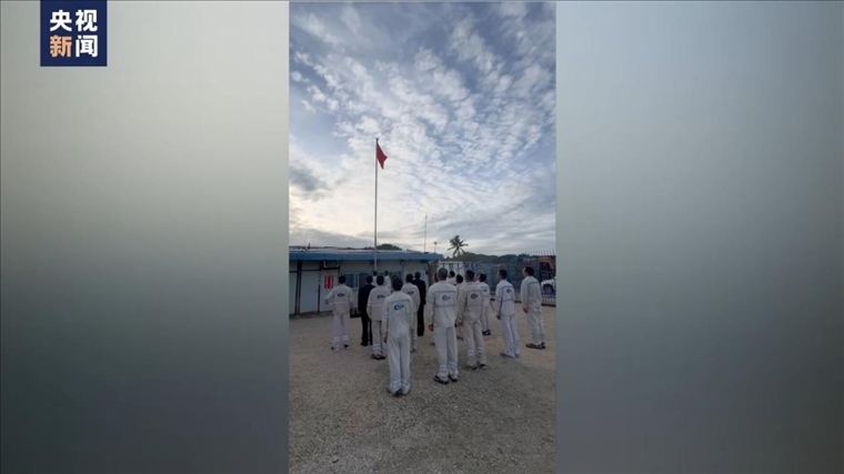 ·中國駐瑙魯使館復(fù)館小組29日舉行升國旗儀式。時隔近19年,五星紅旗再次在瑙魯升起。