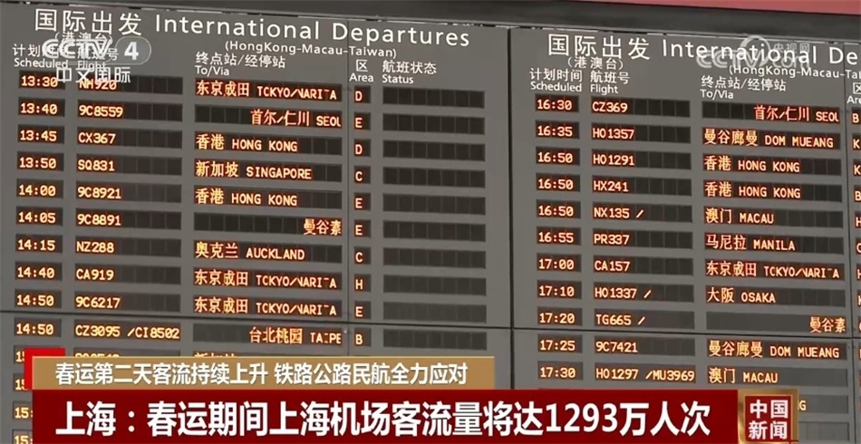 民航方面,今年春運(yùn)期間預(yù)計上海浦東、虹橋兩機(jī)場航班量將達(dá)到8.6萬架次,客流量1293萬人次。預(yù)計出行高峰會在2月7日到9日,返程高峰會在2月16日到17日。