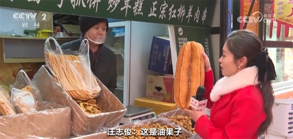 總臺記者 馬雅慧:今天一來到這里我就聞到了濃濃的香料味兒,大家看我身旁的這些都是青海特色的油炸年饃,當(dāng)?shù)厝艘步杏驼ü?。老板,我看這里款式各式各樣的都有,您能給我們介紹一下嗎?