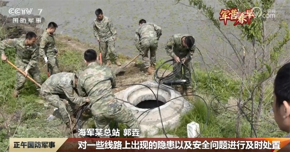 海軍某總站 郭垚:每年都要在春秋兩季開(kāi)展徒步巡線,巡線主要任務(wù)是把我們所轄400余公里的光纜線路全巡一遍,對(duì)一些線路上出現(xiàn)的隱患以及安全問(wèn)題進(jìn)行及時(shí)處置。