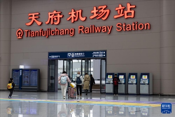1月26日,旅客走進(jìn)天府機(jī)場(chǎng)綜合交通換乘中心(GTC)天府機(jī)場(chǎng)高鐵站。新華社記者 江宏景 攝