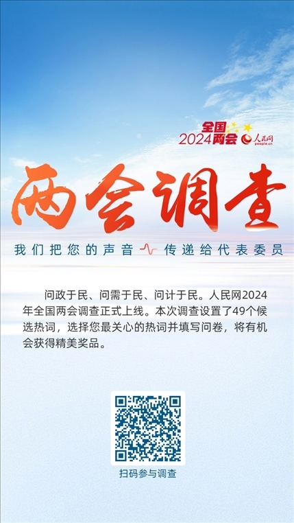 為感謝網(wǎng)友對全國兩會調(diào)查的支持,參與人民網(wǎng)2024年全國兩會調(diào)查還有機(jī)會抽取精美獎品。