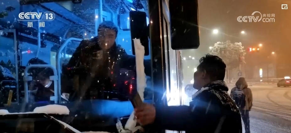 看到一些帶著小孩和老人的乘客沒能擠上車,站在風雪中焦急等候,黃勁松和隊友們走上前,帶著他們前往公交站場,提前上車等候發(fā)班。凌晨1時10分,第二趟加班車從車場出發(fā)了。