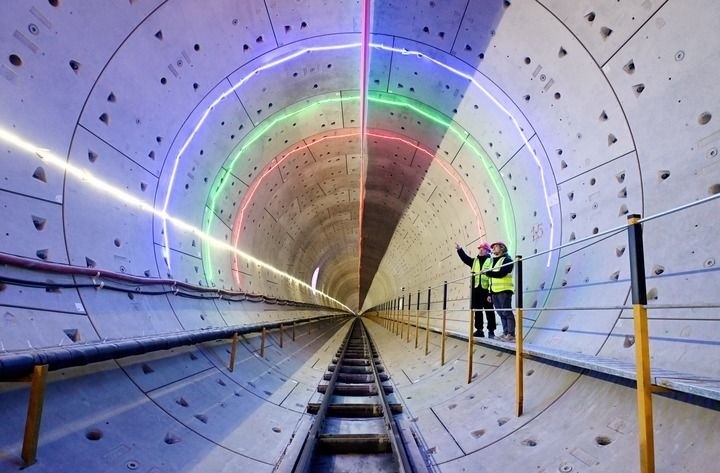 2024年2月3日,工作人員在北京軌道交通22號線河北段盾構隧道內(nèi)進行巡查。新華社記者 王曉 攝