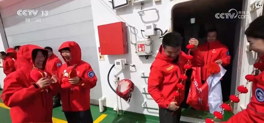 每逢佳節(jié)倍思親,龍年新年到了,考察隊員們排隊打電話、一起錄視頻,把祝福傳回萬里之外的國內(nèi)。