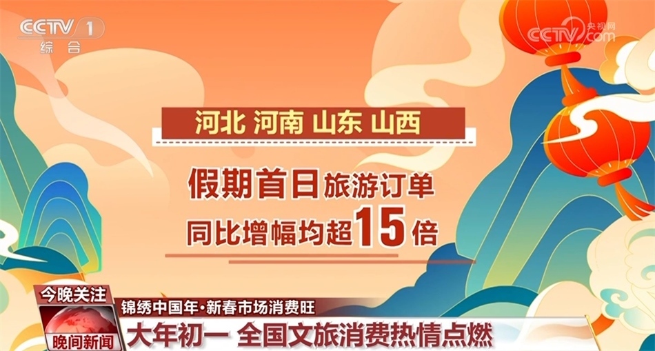 這個(gè)春節(jié)假期,全國(guó)的文旅消費(fèi)熱情也被點(diǎn)燃。數(shù)據(jù)顯示,多地在大年初一迎來(lái)游客高峰,河北、河南、山東、山西四省在假期首日的旅游訂單同比增幅均超15倍,而屢屢刷屏的洛陽(yáng)各景點(diǎn)門票訂單更是同比增長(zhǎng)35倍。