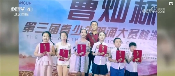 最初只有五名學(xué)生的朗誦團(tuán)“沅水童聲”就這樣成立了。上課和朗讀,幾乎占據(jù)了郭云兵的全部時(shí)間,他買來教材、打卡各個平臺、總結(jié)朗讀技巧,他把舞臺從教室搬到操場上、沅水河邊,鼓勵大家勇于表達(dá)……在2017年的“曹燦杯”全國青少年朗誦大賽中,孩子們一路過關(guān)斬將殺進(jìn)省賽,捧回3塊金牌。很多孩子變得越來越自信,也在成長中逐漸懂事,感受到父母的不易。