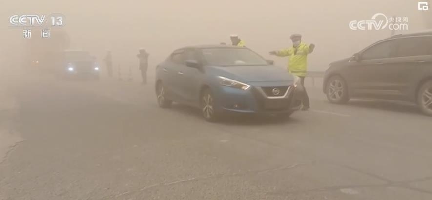 除了風吹雪,新疆部分地區(qū)還出現(xiàn)了沙塵暴天氣。在新疆克州烏恰縣,17日,當?shù)赝话l(fā)沙塵暴,在烏恰縣國道314部分路段能見度不足100米,一名交警一邊手扶車身,一邊努力睜眼辨別路況,在8級狂風沙塵中引導車輛駛出危險區(qū)域。據(jù)了解,此次沙塵天氣一直持續(xù)至2月18日中午12時,當?shù)亟痪簿戎焕к囕v一百多輛。