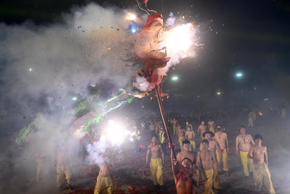 24歲的舞龍者呂清遠(yuǎn)說(shuō),他16歲開(kāi)始參與這項(xiàng)民俗活動(dòng),能成為舞龍人他感到非常自豪。
