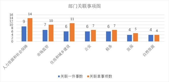 此次新推出第一批13個(gè)重點(diǎn)事項(xiàng)清單,涉及人力資源社會(huì)保障、市場(chǎng)監(jiān)管局、住房城鄉(xiāng)建設(shè)等10個(gè)牽頭部門,以及27個(gè)責(zé)任部門和水電氣網(wǎng)等相關(guān)單位。其中,人力資源和社會(huì)保障部門關(guān)聯(lián)9個(gè)“一件事”中14個(gè)事項(xiàng);市場(chǎng)監(jiān)管部門關(guān)聯(lián)7個(gè)“一件事”中10個(gè)事項(xiàng);住房和城鄉(xiāng)建設(shè)部門關(guān)聯(lián)6個(gè)“一件事”中11個(gè)事項(xiàng);公安部門關(guān)聯(lián)6個(gè)“一件事”中7個(gè)事項(xiàng);稅務(wù)部門關(guān)聯(lián)4個(gè)“一件事”中6個(gè)事項(xiàng);醫(yī)保部門關(guān)聯(lián)4個(gè)“一件事”中5個(gè)事項(xiàng);自然資源部門關(guān)聯(lián)4個(gè)“一件事”中4個(gè)事項(xiàng)。