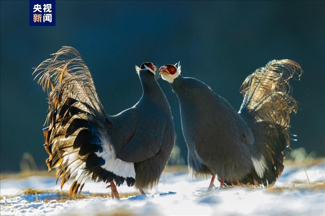 山地雞中的“藍精靈”雪中起舞,組團打卡祁連山。