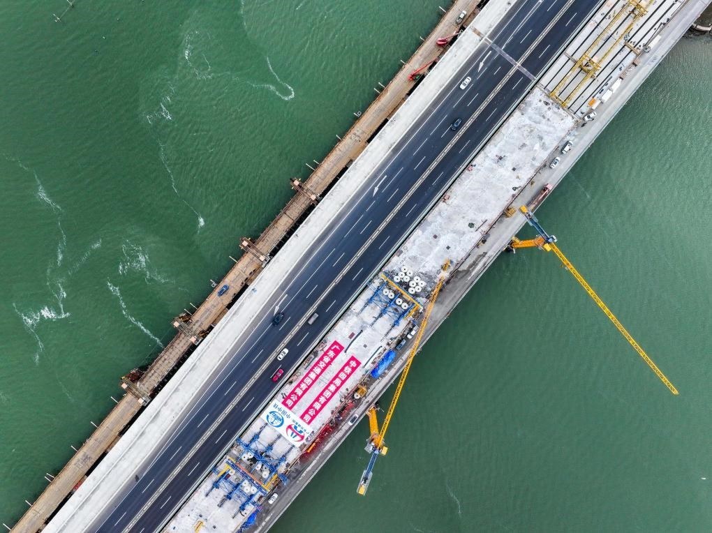 這是1月21日拍攝的深汕西高速長沙灣跨海特大橋(無人機(jī)照片)。當(dāng)日,中鐵四局承建的深汕西高速改擴(kuò)建項(xiàng)目長沙灣跨海特大橋左幅主跨合龍。新華社記者 劉大偉 攝