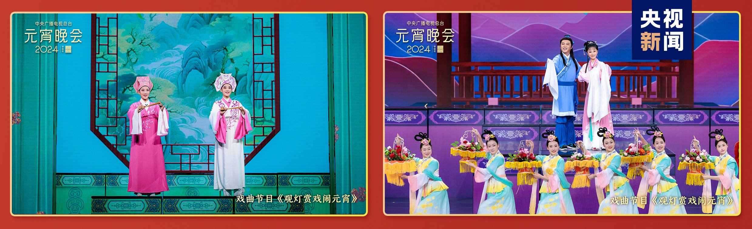 戲曲節(jié)目中,伴隨著“火樹千春妍,元夕月正圓,歡歌笑語喧”的戲腔戲韻,閩劇戲歌首次亮相總臺元宵晚會。其他劇種還玩上了跨界表演,熟悉的旋律響起,站在舞臺上的表演者卻是令人直呼意外的“混搭”組合。陳麗君與黃齡攜手帶來越劇《梁祝》選段,潘檸靜與沙溢共唱黃梅戲《天仙配》,在上元之夜演繹傳世愛情故事,“戲曲真的出圈了”“誰說年輕人不聽戲,永遠為經(jīng)典唱段打call”。