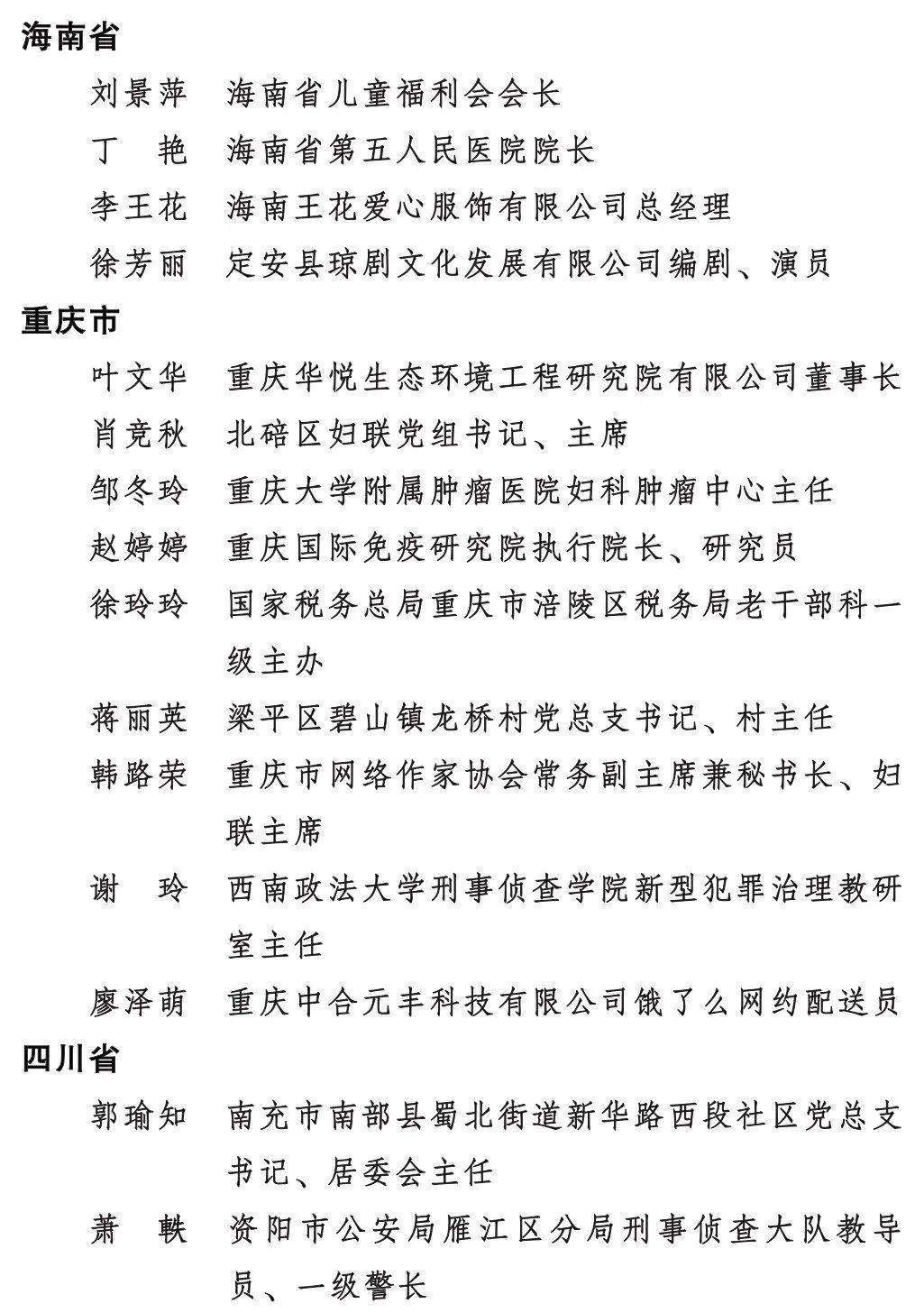 全國三八紅旗手標兵名單