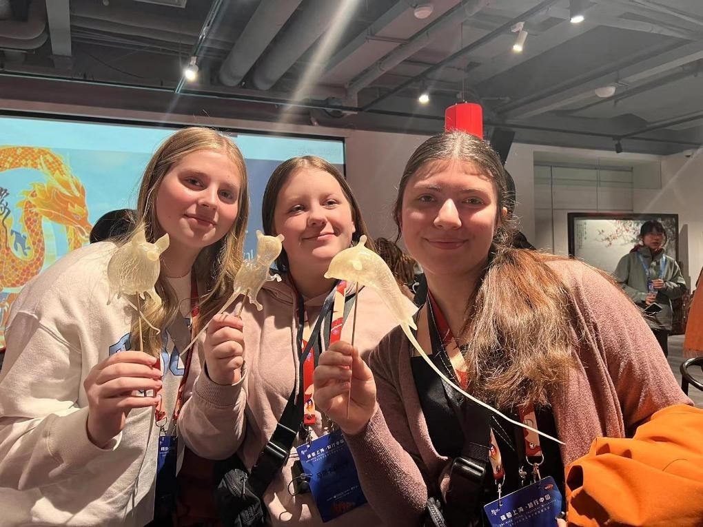 △ 2024年1月下旬,馬斯卡廷中學(xué)訪華代表團(tuán)學(xué)生在上海體驗民俗活動。