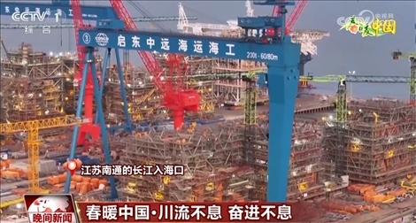 在江蘇南通的長江入??冢粋€個造型各異的“巨無霸”讓人震撼。眼前的這艘海上浮式生產(chǎn)儲油輪已經(jīng)進入最后的模塊吊裝施工階段。與此同時,自升式風(fēng)電安裝船、全球最大集裝箱船等重點高端產(chǎn)品不斷取得突破。長江入海口是終點也是起點,所謂突破就是將終點當成起點,不停出發(fā)。