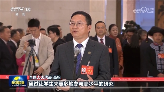 談及高等教育如何培養(yǎng)學(xué)生的創(chuàng)造力和促進學(xué)生的全面發(fā)展,作為中山大學(xué)校長的全國人大代表高松表示,面對未來,我們需要培養(yǎng)學(xué)生的學(xué)習(xí)力、思想力和行動力,從而形成創(chuàng)造力。