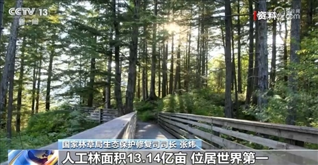 國家林草局生態(tài)保護修復(fù)司司長張煒表示,黨的十八大以來,全國上下共同努力,累計完成國土綠化任務(wù)16.8億畝,全國森林面積、森林蓄積量連續(xù)多年保持“雙增長”,人工林面積13.14億畝,位居世界第一。