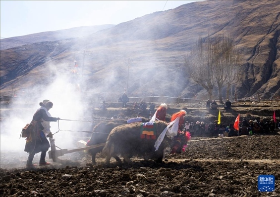 這是3月16日拍攝的西藏山南市瓊結縣加麻鄉(xiāng)加麻村的春耕儀式現場。新華社記者 旦增尼瑪曲珠 攝