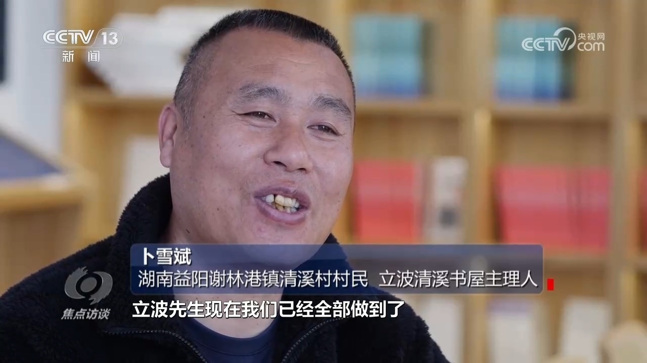湖南益陽謝林港鎮(zhèn)清溪村村民、立波清溪書屋主理人卜雪斌:“這個(gè)時(shí)間我記得清清楚楚,村里是2022年3月16日,第一次到我家里來,宣傳書屋的構(gòu)想,3月19日做設(shè)計(jì)方案的就過來了,3月22日基本上就動(dòng)工了。”