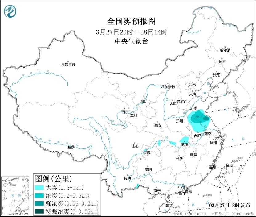 央視網(wǎng)消息:中央氣象臺3月27日18時發(fā)布大霧黃色預警:預計,3月27日夜間至28日上午,山東南部、河南東部、安徽中北部、江蘇中北部、湖北東部和南部等地的部分地區(qū)有大霧,其中,山東南部、安徽北部、江蘇北部等地的部分地區(qū)有能見度低于500米的濃霧,局地有能見度低于200米的強濃霧。
