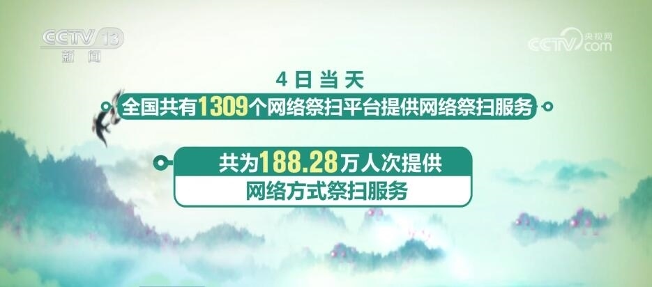 另外,4月4日當(dāng)天全國(guó)共有1309個(gè)網(wǎng)絡(luò)祭掃平臺(tái)提供網(wǎng)絡(luò)祭掃服務(wù),共為188.28萬(wàn)人次提供網(wǎng)絡(luò)方式祭掃服務(wù)。