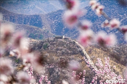 北京長(zhǎng)城內(nèi)外山花爛漫。