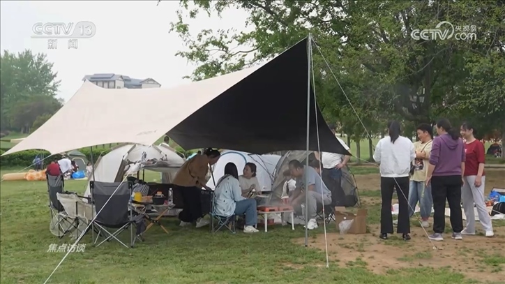 余澤建是福建人,在湖北工作。4月14日這天,他和親戚、朋友開了一個半小時的車來到武漢市黃陂木蘭景區(qū)露營。余澤建的露營裝備越買越專業(yè)、越買越多,從一頂帳篷,到配備燒烤架、戶外桌椅、天幕等。