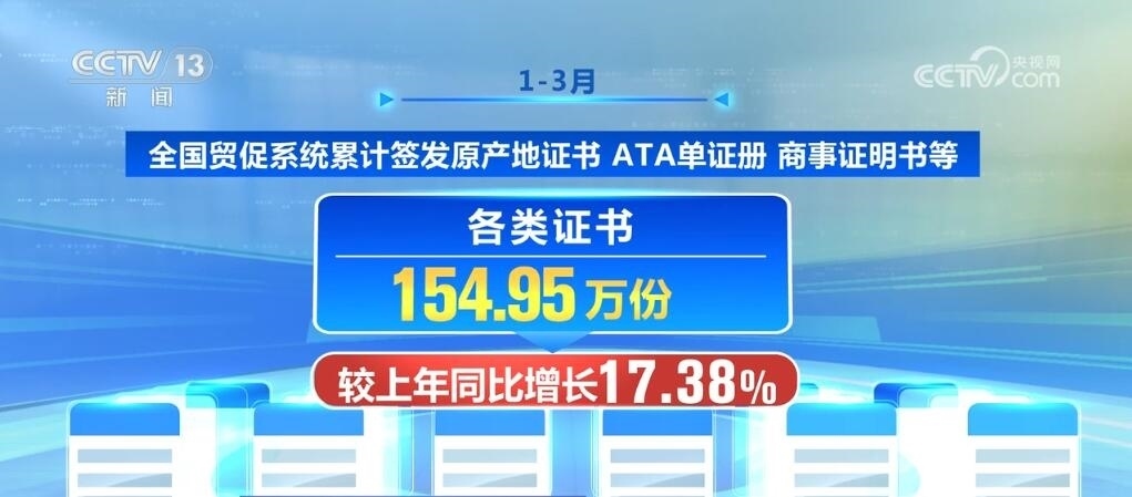 1—3月,全國貿(mào)促系統(tǒng)累計(jì)簽發(fā)原產(chǎn)地證書、ATA單證冊、商事證明書等各類證書154.95萬份,較上年同比增長17.38%。其中,全國貿(mào)促系統(tǒng)非優(yōu)惠原產(chǎn)地證書簽證金額共計(jì)849.31億美元,同比增長2.47%;全國貿(mào)促系統(tǒng)優(yōu)惠原產(chǎn)地證書簽證金額共計(jì)161.21億美元,同比增長4.73%。