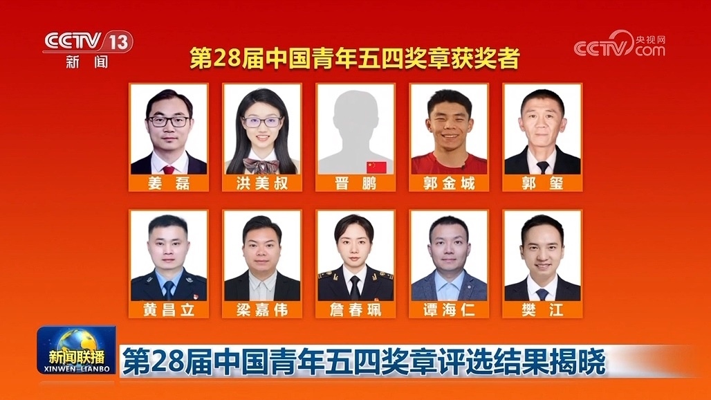 央視網(wǎng)消息(新聞聯(lián)播):在五四青年節(jié)到來之際,第28屆中國青年五四獎章評選結果揭曉。