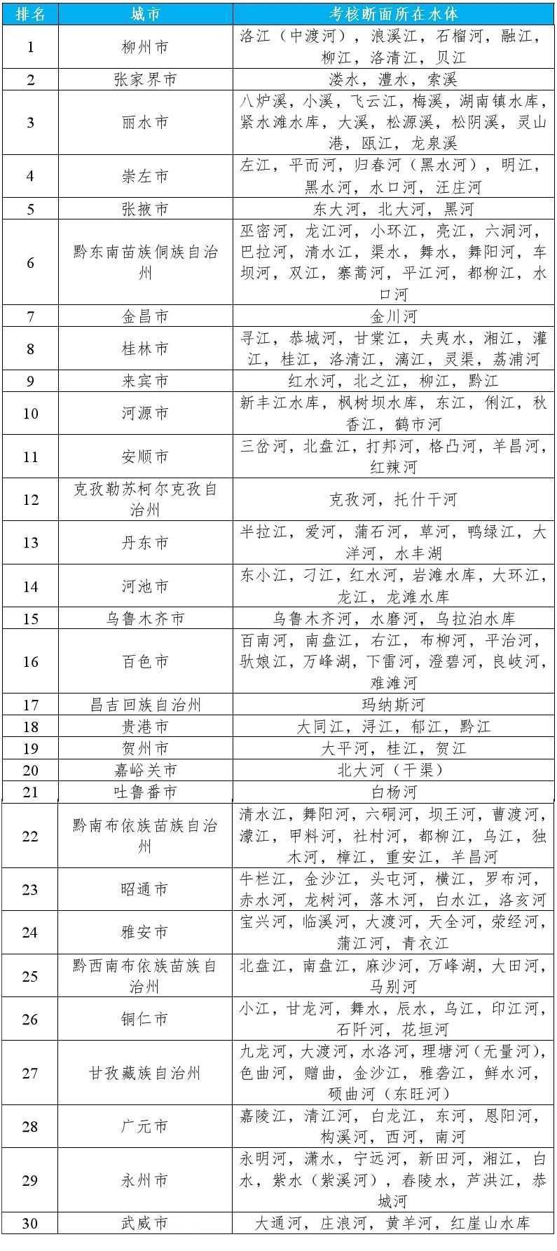 地級及以上城市國家地表水考核斷面排名