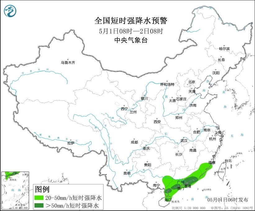 央視網(wǎng)消息:中央氣象臺(tái)5月1日06時(shí)發(fā)布強(qiáng)對流天氣藍(lán)色預(yù)警:預(yù)計(jì)5月1日08時(shí)至2日08時(shí),廣東南部及沿岸海域等地的部分地區(qū)將有8-10級雷暴大風(fēng)或冰雹天氣,最大風(fēng)力11級以上;福建東南部、廣西東部、廣東中南部、海南島東北部及華南沿岸海域等地的部分地區(qū)將有小時(shí)雨量大于20毫米的短時(shí)強(qiáng)降水天氣,其中廣東南部及沿岸海域等地局地最大小時(shí)雨量大于50毫米,最大可達(dá)70毫米以上。