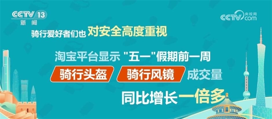 京東數(shù)據(jù)顯示,“五一”前半個(gè)月,公路自行車和電助力自行車銷售額的增幅最大,同比增長(zhǎng)了兩倍多。騎行服、騎行穿戴裝備、自行車配件的銷售也同比增加一倍多。騎行愛(ài)好者們也對(duì)安全高度重視,淘寶平臺(tái)顯示,“五一”假期前一周,騎行頭盔和騎行風(fēng)鏡的成交量也同比增長(zhǎng)一倍多。