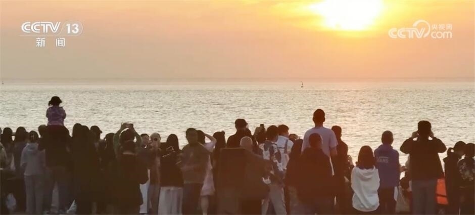 這兩天,浙江海鹽縣的觀海園吸引了來自全國(guó)各地的游客,共賞“最美日出”。凌晨五點(diǎn)多,晨曦微露,海鹽縣觀海園的魚鱗海塘邊,近萬人靜靜守候,當(dāng)?shù)谝豢|陽光刺破云層,游客們紛紛拿出手機(jī)、相機(jī)記錄下這動(dòng)人一刻。