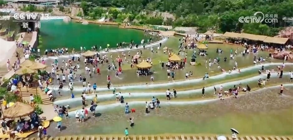 隨著氣溫漸高,越來越多的游客選擇走進(jìn)峽谷,擼起褲管、光著腳丫走進(jìn)淺灘中,搶先感受夏日清涼。在這里不僅能淺灘戲水,更能與落差近400米的飛瀑合影。大自然的鬼斧神工加上景區(qū)的創(chuàng)新舉措,為當(dāng)?shù)芈糜螛I(yè)注入了新的活力,帶動(dòng)了新一輪的消費(fèi)熱潮。