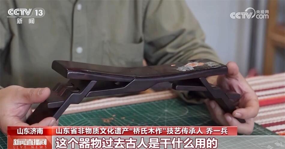 山東省非物質(zhì)文化遺產(chǎn)“橋氏木作”技藝傳承人喬一兵介紹:“它本身是一整塊木頭六個(gè)面,通過鋸和鑿形成一個(gè)器物。這個(gè)器物過去古人是干什么用的?當(dāng)枕頭用的,也可以當(dāng)?shù)首佑?,它最大的特點(diǎn)是可以折疊,攜帶非常方便,傳說是魯班發(fā)明的。和眾多的優(yōu)秀的傳統(tǒng)技藝一樣,它深層次代表的是中國的一些思想、一些哲學(xué)、一些文化在里邊,魯班枕的核心是平衡和和諧,我覺得我很有必要把它傳承下來,發(fā)揚(yáng)光大?!?/p>