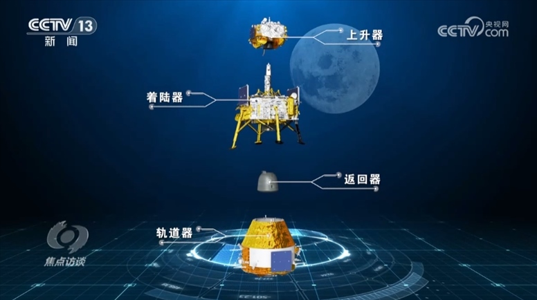 嫦娥六號探測器由4部分組成,分別是負責從月面起飛的上升器、承擔落月和采集任務(wù)的著陸器、將帶著月壤樣品再入地球的返回器以及承擔地月往返運輸任務(wù)的軌道器??蒲腥藛T為嫦娥六號設(shè)計了11個階段的飛行任務(wù),每個階段都環(huán)環(huán)相扣。