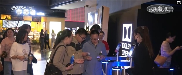 記者在北京五棵松的一家影院看到,多個(gè)放映廳檢票處觀眾正排著長(zhǎng)隊(duì)檢票入場(chǎng)。