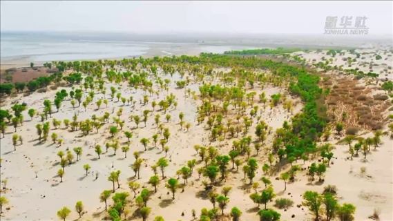 五月初期,新疆和田地區(qū)境內(nèi)的胡楊林逐漸披綠,無數(shù)的新芽悄悄吐露,帶著一股勢(shì)不可擋的勁頭,在沙漠邊緣茁壯成長,讓人感受到無限的力量和勃勃生機(jī)。5萬余畝胡楊林枝繁葉茂,沿著玉龍喀什河一路延伸,仿佛一條綠色的絲帶,飄落在塔克拉瑪干沙漠中,為游客奉上了一道美麗的天然景觀。