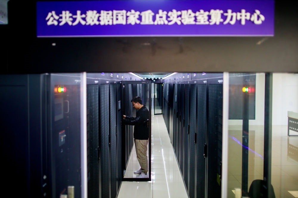 2023年5月23日,工作人員在貴州大學(xué)省部共建公共大數(shù)據(jù)國家重點實驗室算力中心機(jī)房檢查設(shè)備。新華社記者 劉續(xù) 攝