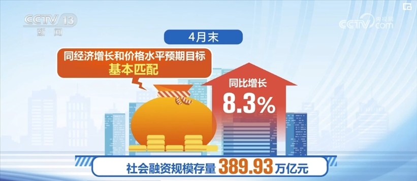 4月末,社會融資規(guī)模存量389.93萬億元,同比增長8.3%,同經(jīng)濟(jì)增長和價格水平預(yù)期目標(biāo)基本匹配。1—4月,社會融資規(guī)模增量累計(jì)為12.73萬億元,處于歷史同期較高水平。