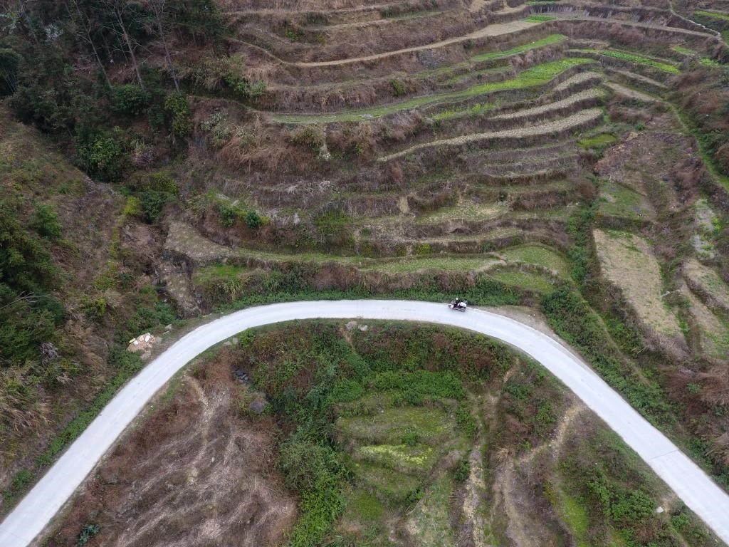 ?↑在廣西東蘭縣隘洞鎮(zhèn)板康村,黃乜鮮用三輪車載著兒子黃必華行駛在上學的路上(2018年2月26日攝)。