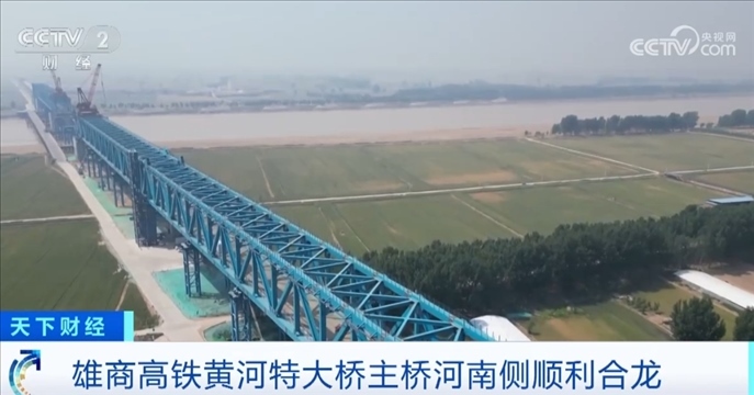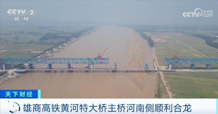 央視網(wǎng)消息:雄商高鐵是京雄商高鐵的一段,連接河北省雄安新區(qū)和河南商丘。5月18日,雄商高鐵黃河特大橋河南側(cè)的鋼桁梁架設(shè)施工全部完成,這標志著主橋河南側(cè)已經(jīng)順利合龍。截至目前,全橋鋼桁梁架設(shè)的進度超過了87%,預(yù)計主橋全橋7月份合龍。