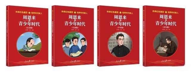 根據(jù)中共中央辦公廳印發(fā)的《關(guān)于推動黨史學(xué)習(xí)教育常態(tài)化長效化的意見》,以及教育部辦公廳印發(fā)的《關(guān)于在思政課中加強(qiáng)以黨史教育為重點(diǎn)的“四史”教育的通知》,2020年,在人民日報(bào)社副總編輯方江山的策劃和支持下,出版社約請時(shí)任中國社會科學(xué)院近代史所黨委書記金民卿和周恩來侄外孫、北京大鸞翔宇慈善基金會理事長沈清,主編“傳承紅色基因,培養(yǎng)時(shí)代新人”叢書。該叢書首批圖書包括《毛澤東的青少年時(shí)代》《周恩來的青少年時(shí)代》,書中截取了毛澤東、周恩來青少年時(shí)期的光輝片段,講述其成長、學(xué)習(xí)經(jīng)歷和積極投身革命的艱辛歷程。同時(shí),考慮到不同年齡段學(xué)生的閱讀水平,又將圖書分為注音版、兒童版、少年版、青年版四個(gè)版本,用青少年喜聞樂見的方式,采取圖文并茂的形式,引導(dǎo)廣大青少年從小在心里深植紅色基因,樹立紅色理想。