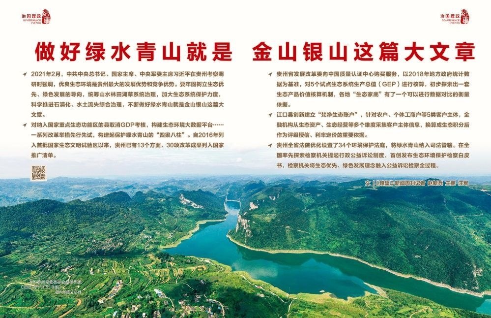 2022年初,《國務院關(guān)于支持貴州在新時代西部大開發(fā)上闖新路的意見》出臺,正式賦予貴州生態(tài)文明建設先行區(qū)的戰(zhàn)略定位,要求貴州堅持生態(tài)優(yōu)先、綠色發(fā)展,筑牢長江、珠江上游生態(tài)安全屏障,科學推進石漠化綜合治理,構(gòu)建完善生態(tài)文明制度體系,不斷做好綠水青山就是金山銀山這篇大文章。