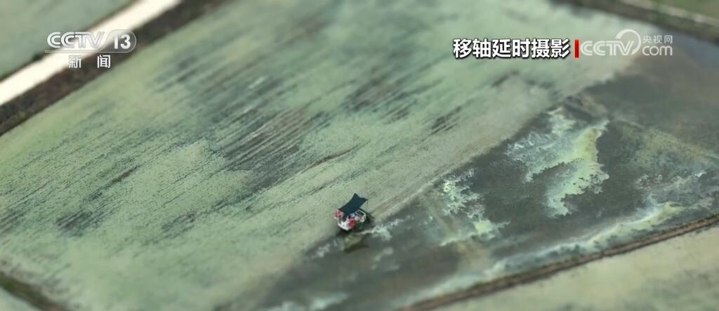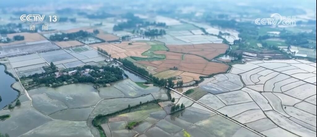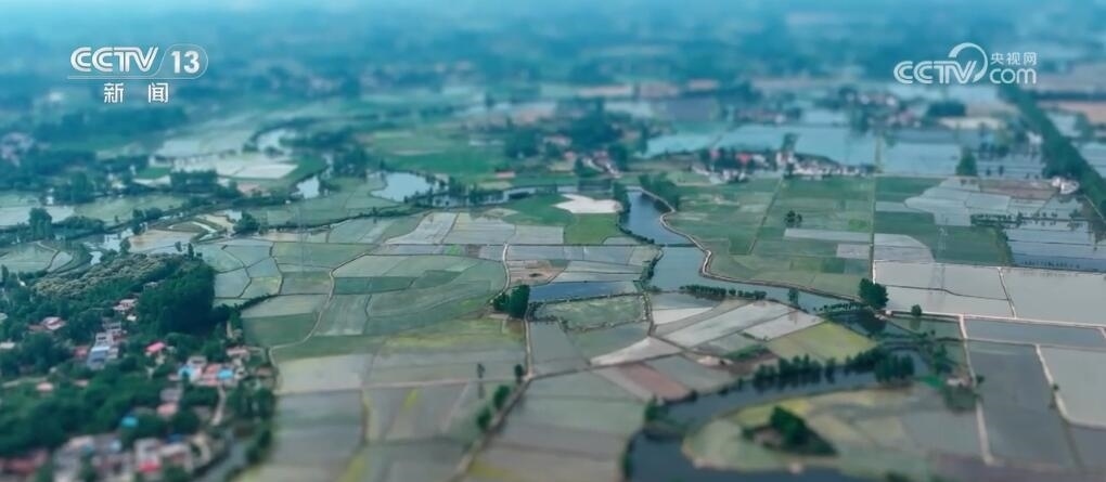 現在您看到的是河南信陽淮河以南的水稻插秧現場。插秧機在田間穿梭,一株株茁壯的秧苗被整齊有序地植入田間,一會兒工夫就插滿了整塊稻田??罩懈╊?,一臺臺插秧機在農機手的操控下好似一把把畫刷,在稻田上輕輕暈染,繪就丹青。而同在信陽,淮河以北的麥田里,則是金色的麥浪翻滾起伏,收割機馳騁田間,飽滿的麥穗被卷入機艙,經過收割、脫粒,顆粒歸倉。