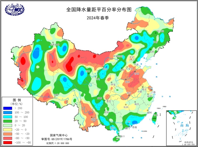 央視網(wǎng)消息:2024年春季,全國氣候總體呈現(xiàn)暖濕特征。平均氣溫為歷史同期最高,南方多站日最高氣溫達到或超過歷史極值;北方冷空氣次數(shù)偏多,氣溫波動起伏大。全國降水量總體偏多,但空間分布不均。14次區(qū)域暴雨過程襲擊我國,較常年同期明顯偏多;南方強對流天氣頻發(fā),局地影響重;西南地區(qū)出現(xiàn)冬春連旱,進入5月后緩解;4月以來,黃淮江淮地區(qū)氣象干旱露頭并發(fā)展,目前仍存在中度及以上等級氣象干旱;春季,西北太平洋及南海共生成兩個臺風(fēng),生成數(shù)量接近常年同期,無臺風(fēng)登陸我國。