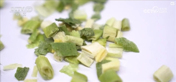 香蔥被運(yùn)輸?shù)疆?dāng)?shù)氐募庸S后,經(jīng)過洗、理、切、分揀裝盤,然后就開始了高科技的“蛻變”之旅。工人先把香蔥放入冷庫冷凍數(shù)小時(shí),然后立即抽真空“升華”干燥,經(jīng)過48小時(shí)左右的一系列工序后,一棵香蔥就變成了脫水蔬菜。留學(xué)回國創(chuàng)業(yè)的王一盛介紹,與過去使用的熱風(fēng)干燥技術(shù)相比,這種新技術(shù)不僅讓垛田香蔥最大程度鎖鮮,價(jià)格也比過去增加了五六倍。