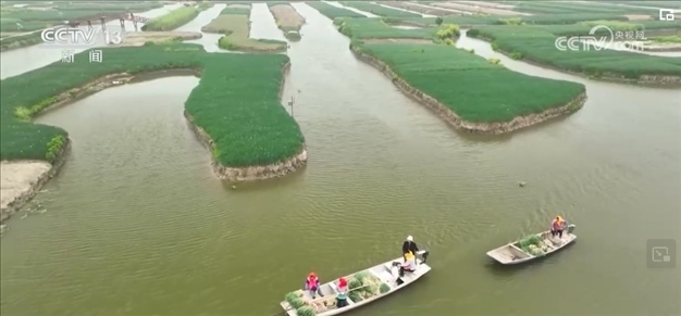 大的有兩三畝,小的只有幾分地,但是垛與垛之間各不相連,四面環(huán)水,為的就是方便船只進(jìn)入進(jìn)行種植。這樣的一種種植方式,也是人們利用自然、改造自然,與自然和諧共生的一種智慧典范。
